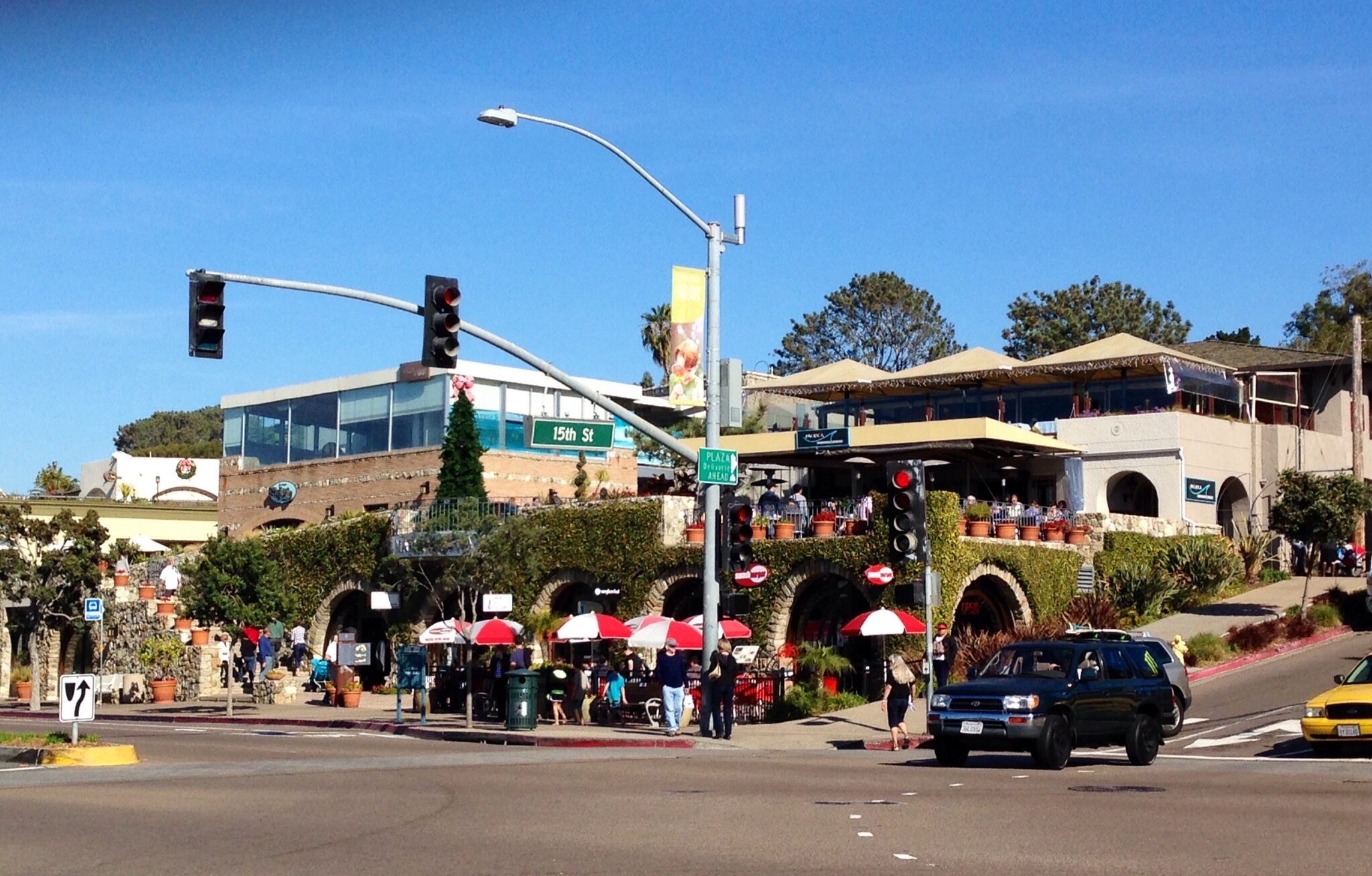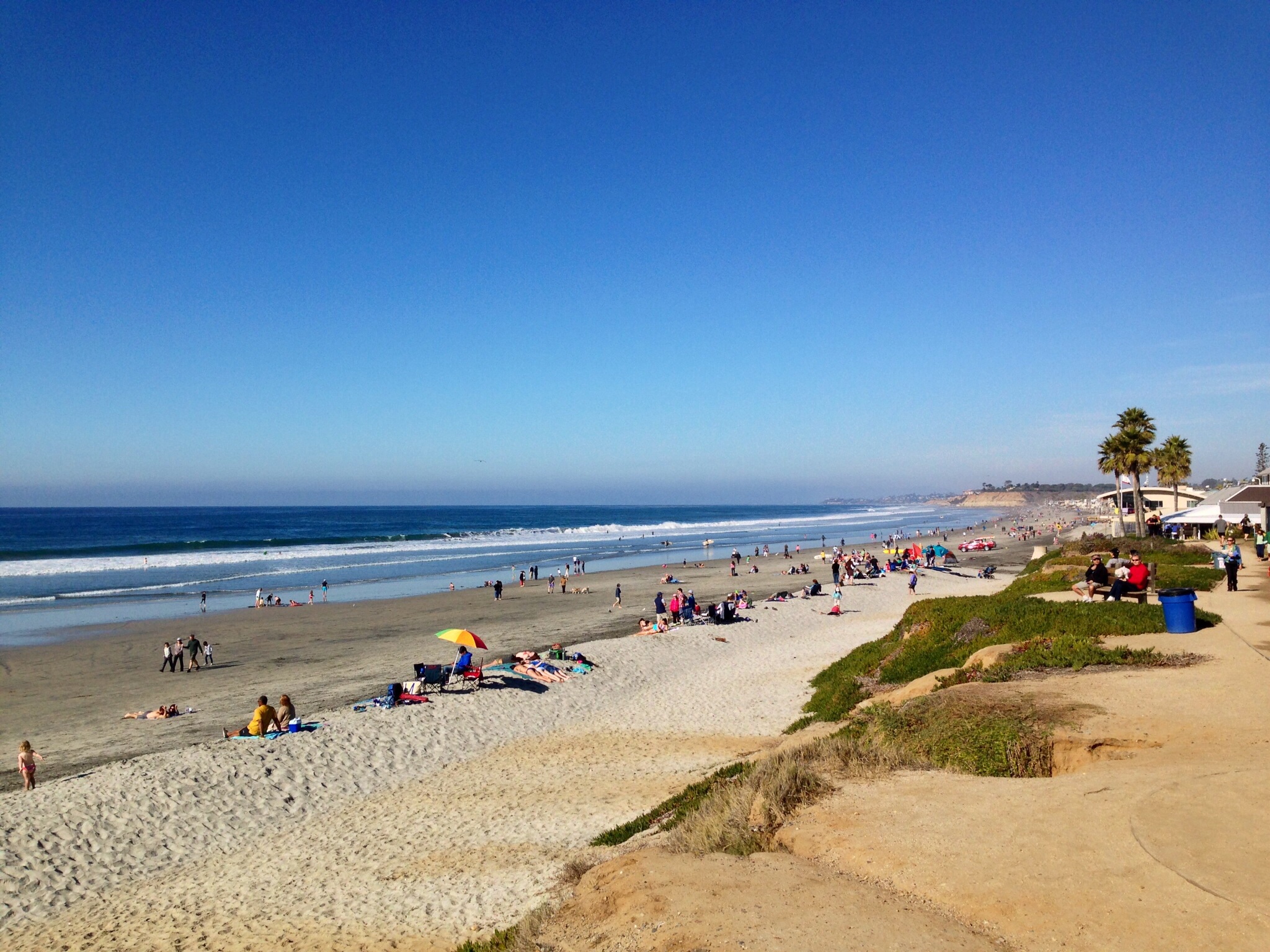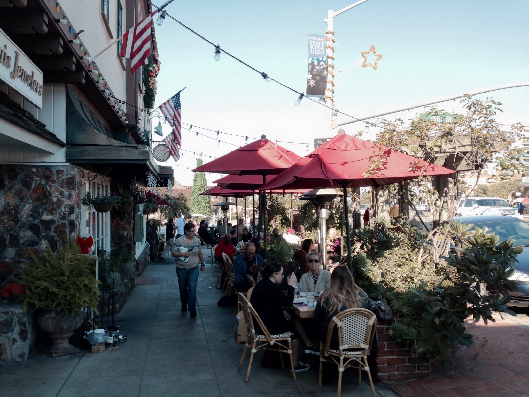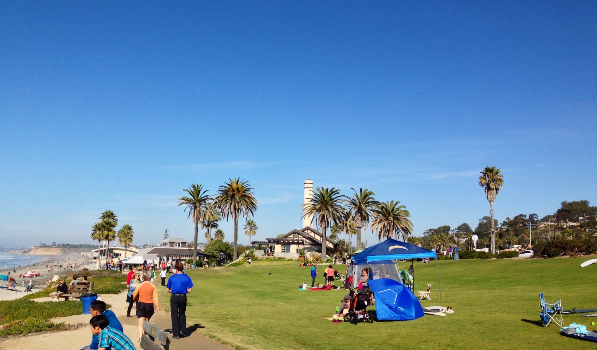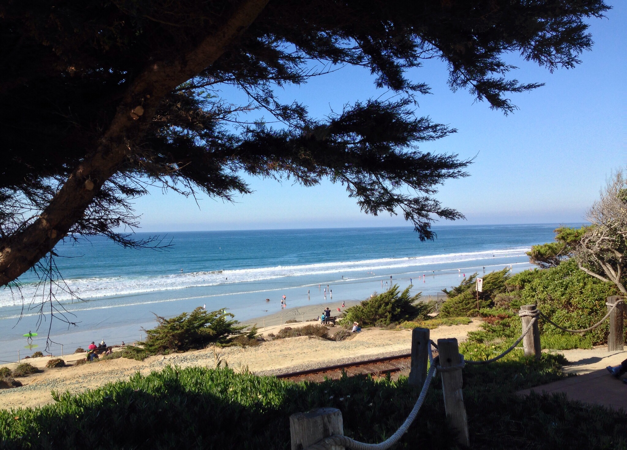 The small affluent coastal city of Del Mar (“Of the Sea”) is located twenty minutes north of downtown San Diego. With a population of less than 4,500 people in a 2.1 square mile area, Del Mar has two miles of pristine beaches. Home to the Del Mar Racetrack and the San Diego County Fair in the summer, its historic downtown village dates back to the 1880s and has over twenty-five restaurants. Because of an active resident group, billboards and high rises are not permitted within the city limits. The city is immortalized in the Surfin’ USA song by the Beach Boys : “You’d catch ’em surfin at Del Mar“.