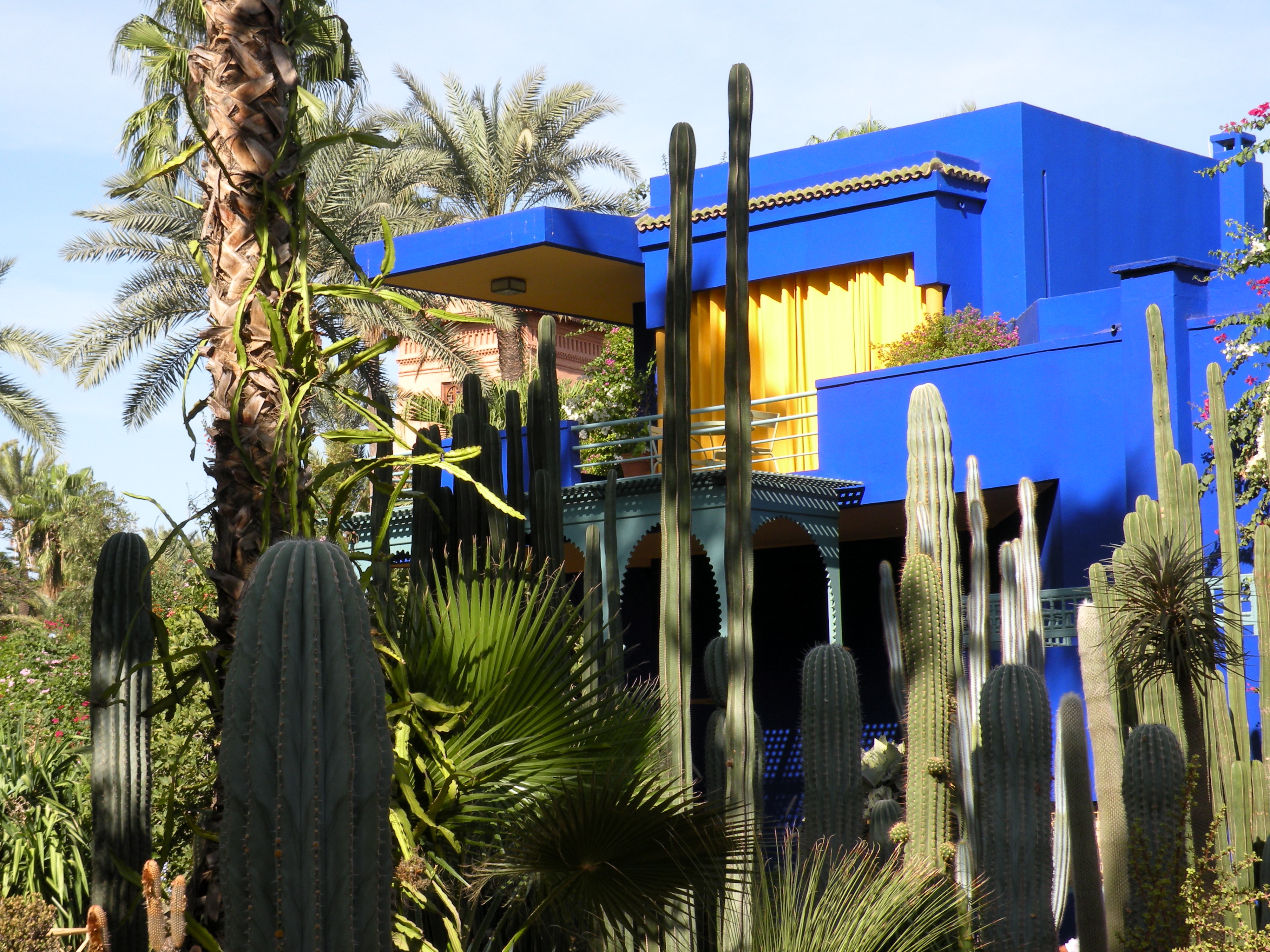The small botanical garden Jardin Majorelle was created in the 1920s by the French painter Jacques Majorelle. Convalescing from tuberculosis, he went to Morocco in 1917 and settled in Marrakech, in his now-famous villa. The garden was filled with a wide array of plants and vibrant colours and its most recent owner, designer Yves Saint Laurent holidayed in a villa nearby until his death in 2008.