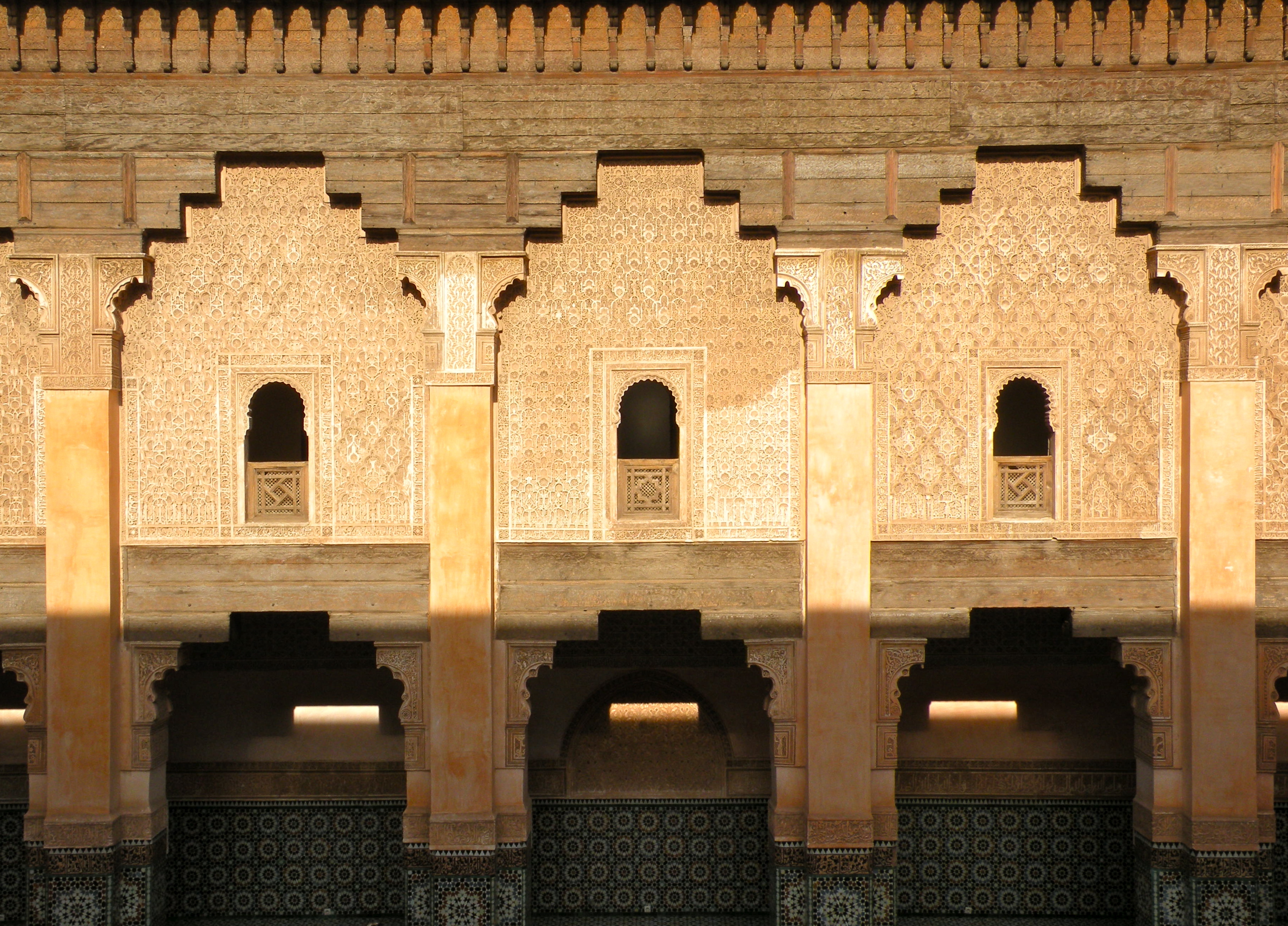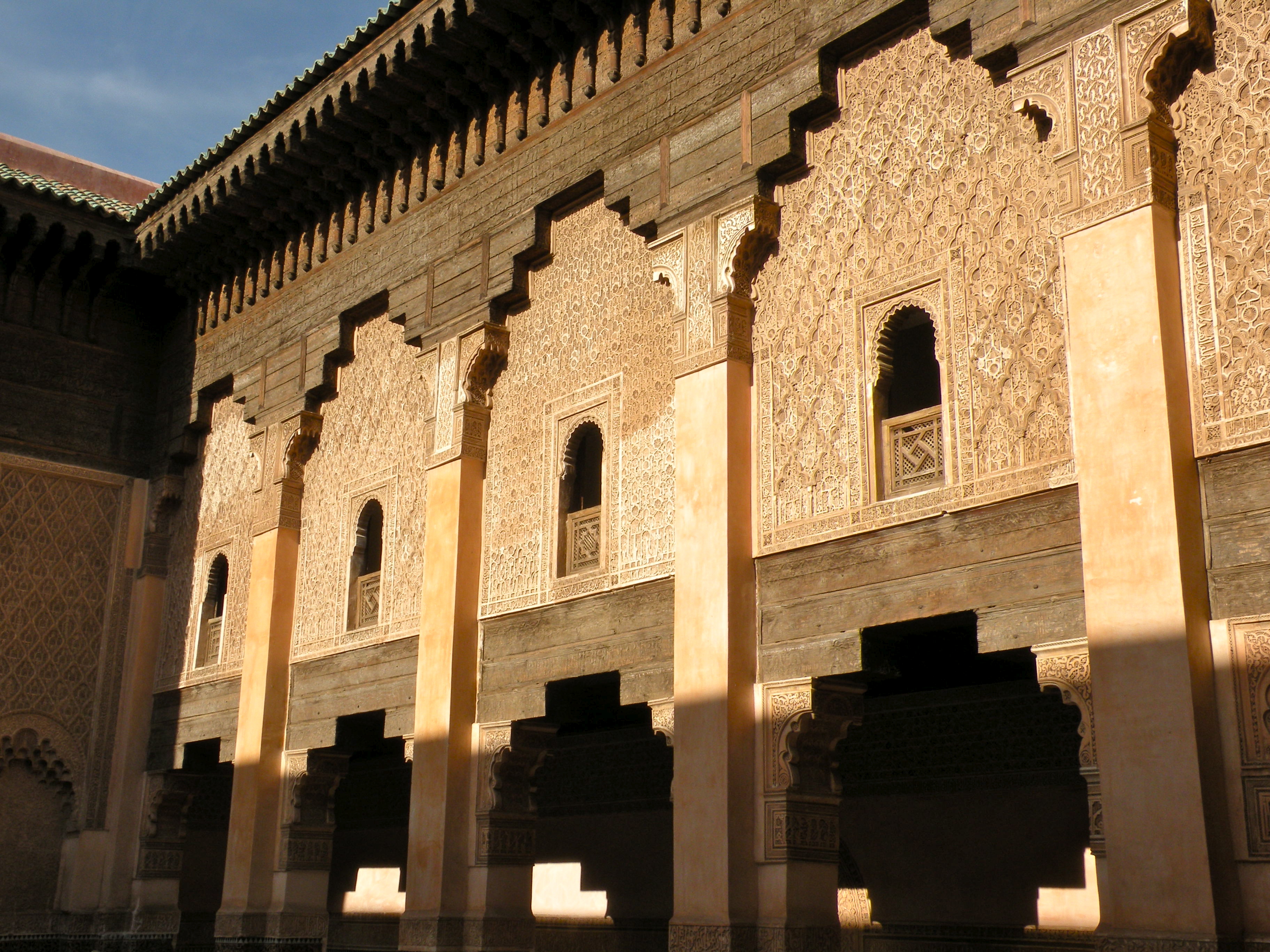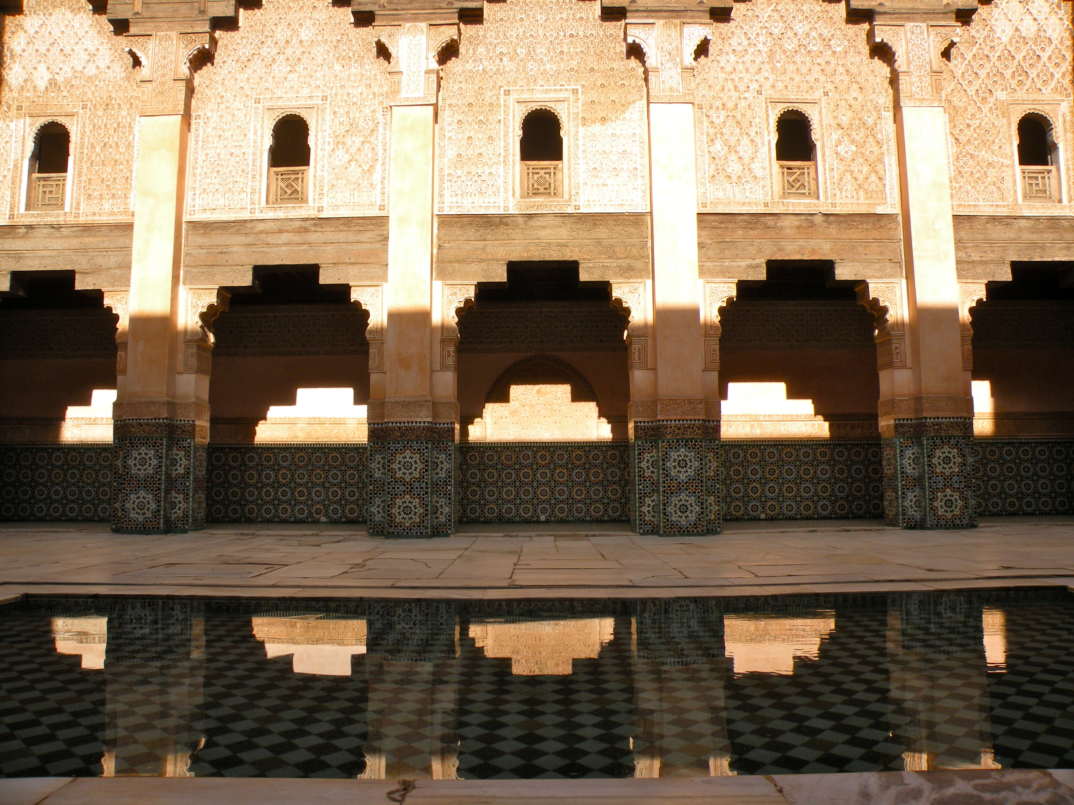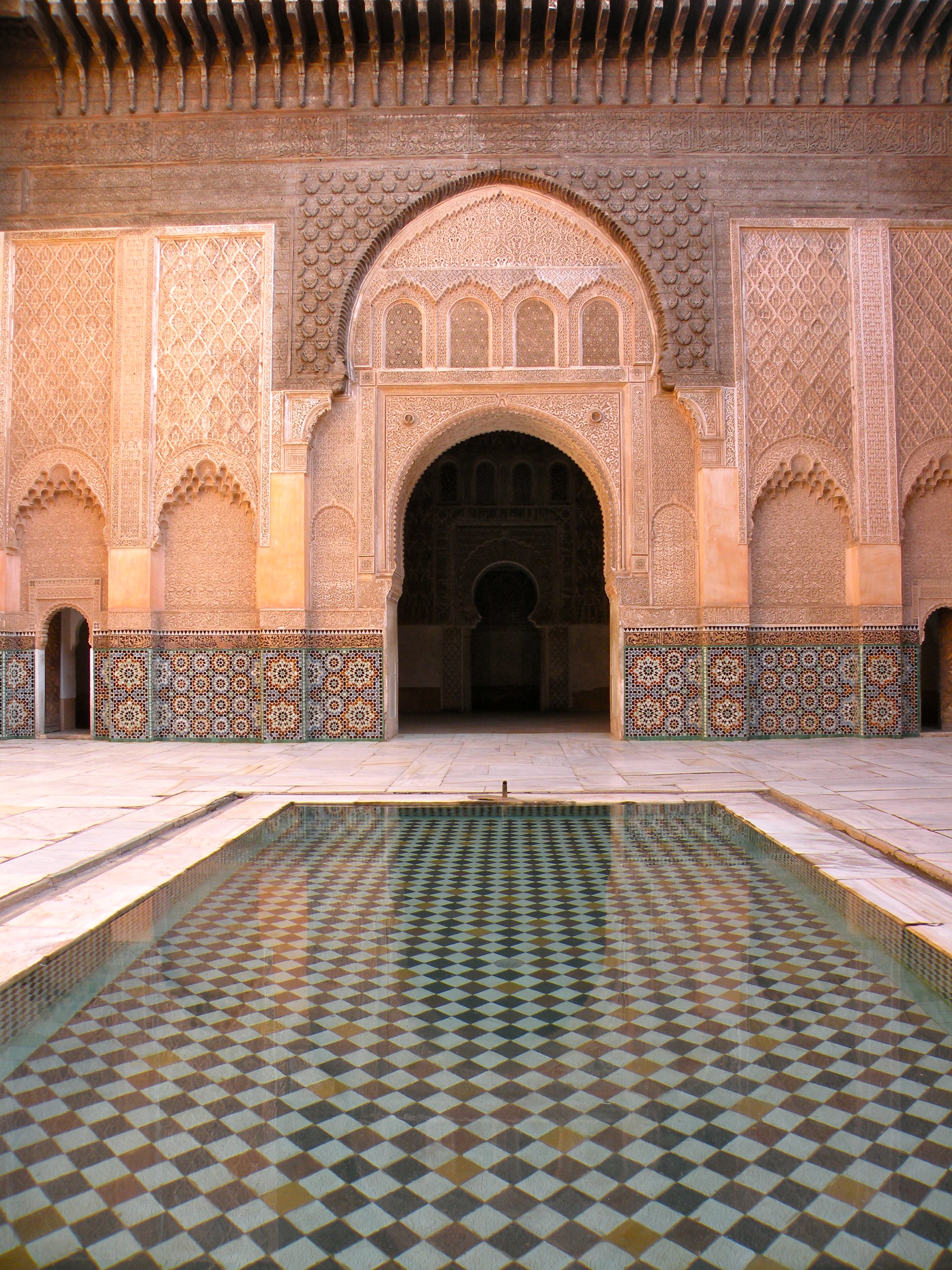 One of the most impressive sights in Marrakech is the Medersa Ben Youssef. Founded during the 14th century, this former Koranic boarding school or medersa is a stunning example of the Saadian dynasty’s distinctive detail and craftmanship. The Medersa Ben Youssef was one of the largest theological colleges in North Africa. Its 130 student dormitories cluster around a courtyard and may have housed as many as 900 students. Closed down in 1960, the building was refurbished and reopened to the public as a historical site in 1982.