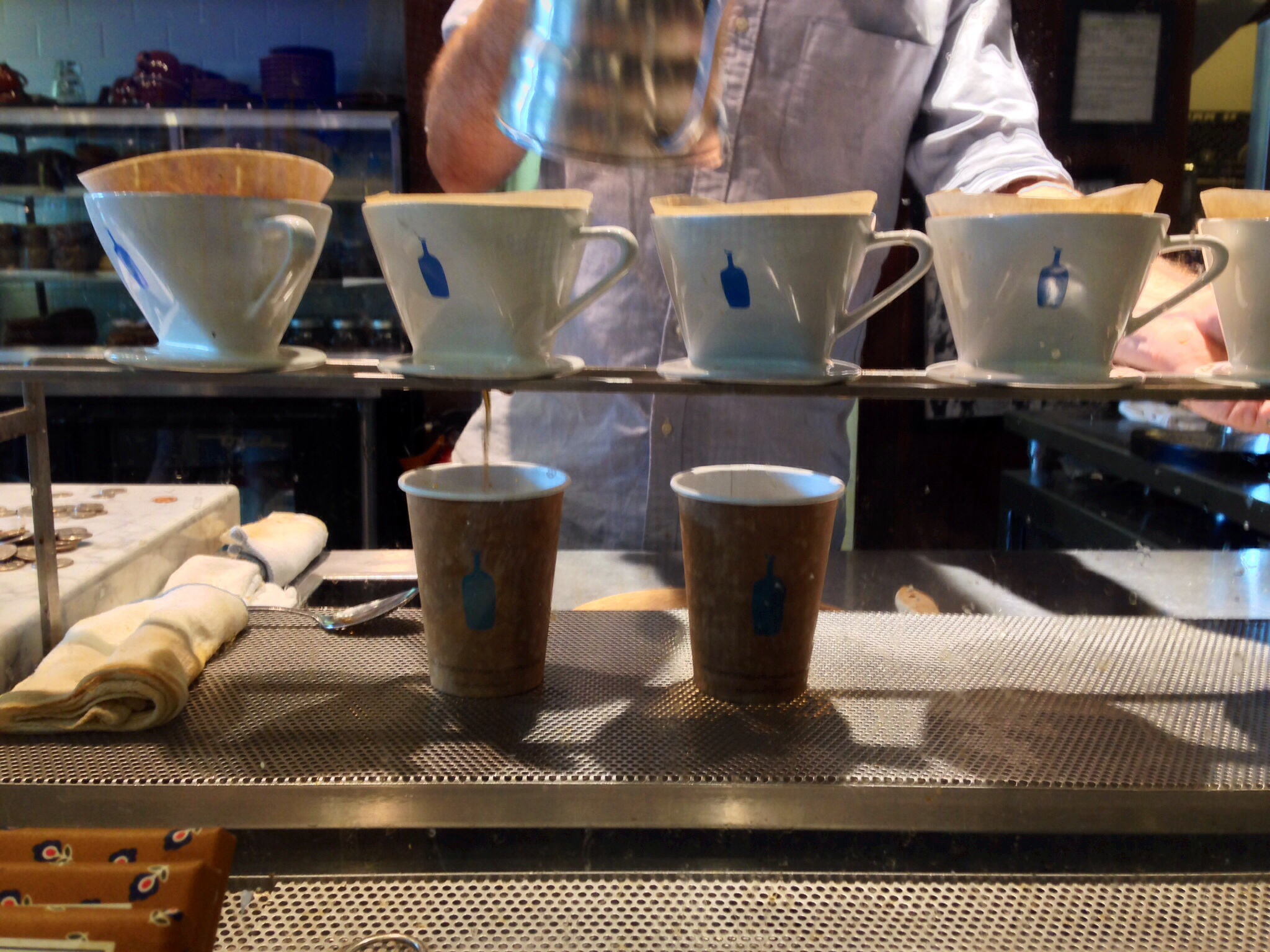 I keep hearing about Williamsburg in Brooklyn so I took the subway across the river and ended up hanging out at Blue Bottle Coffee, where they serve pour-over coffee, the simplest and cleanest way to draw out coffee’s best qualities.