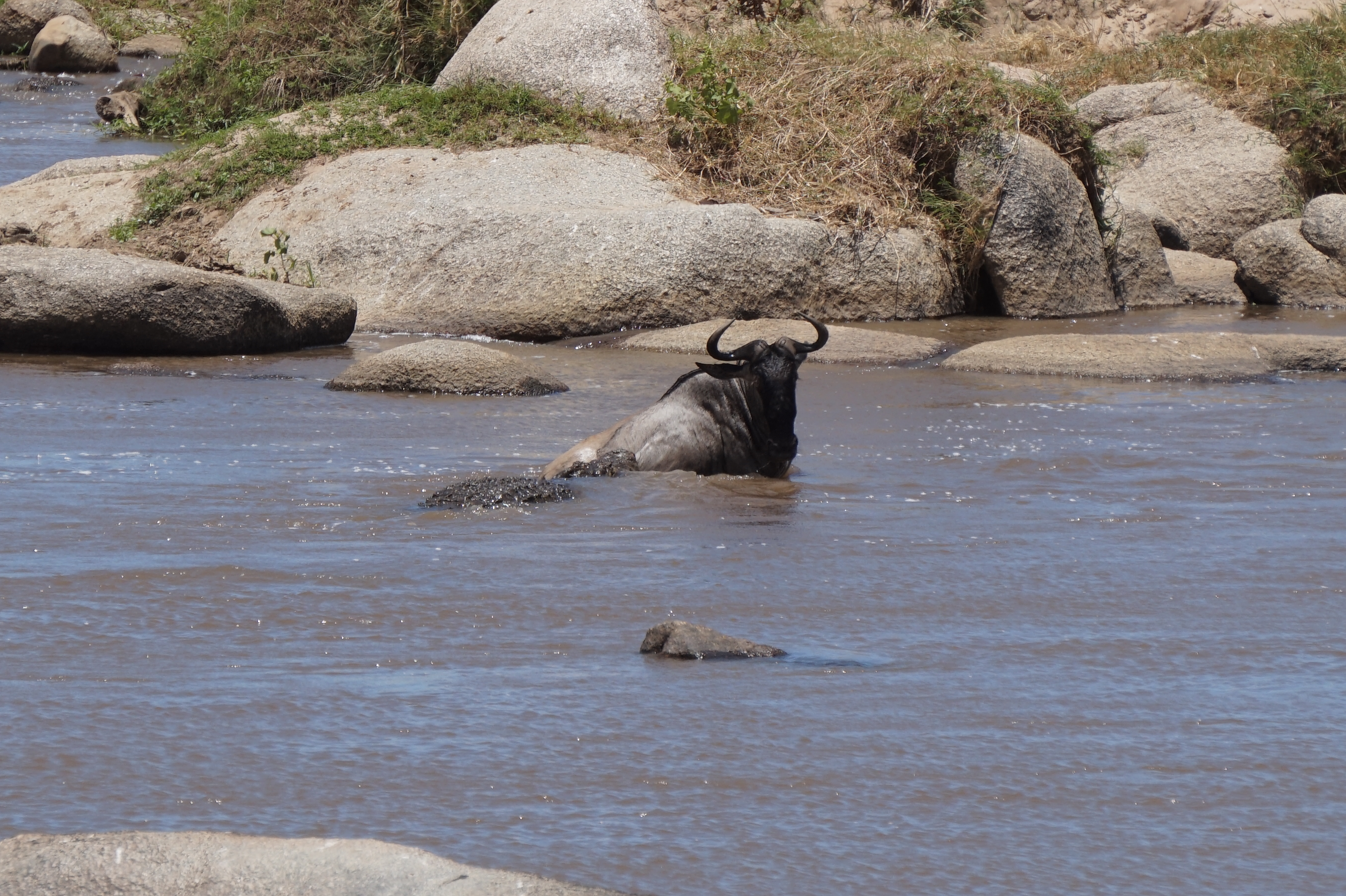 The second Mara River crossing I witnessed was as spectacular – this time through a different crossing point which was a rockier section of the river. This made the crossing more difficult and in addition, a predator – crocodile – was waiting for a prey. The struggle between the crocodile and its victim took 20 minutes.